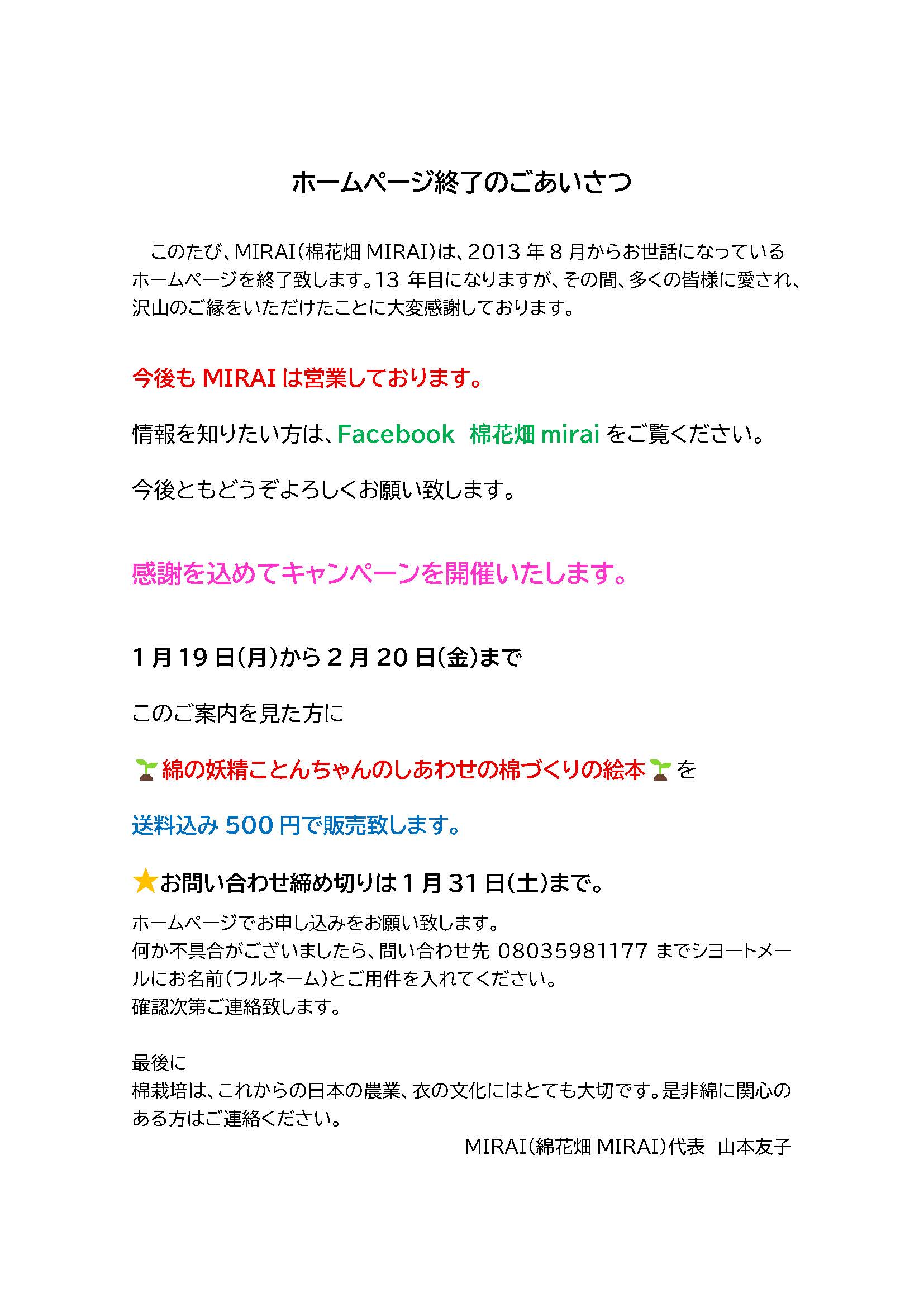 皆様いつもMIRAIのホームページをご覧いただきありがとうございます。